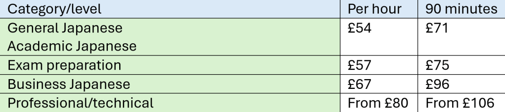 The prices are for lessons held online or at the teacher’s house (North London/N1).